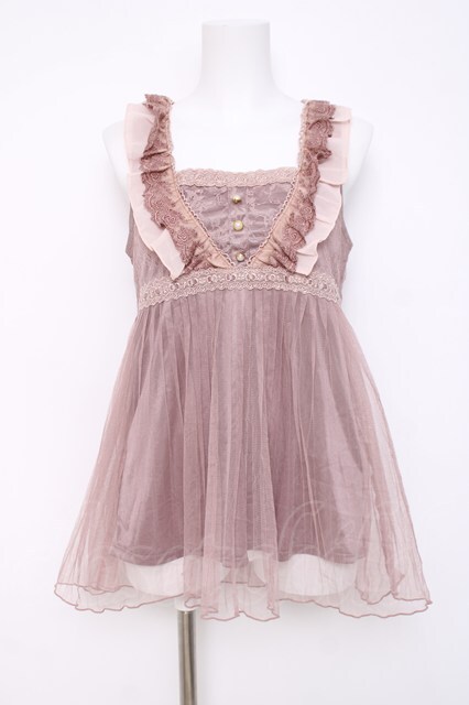 axes femme / チュールフリルアウタータンク M 淡ピンク Y-26-03-20-022-AX-TO-SZ-ZY
