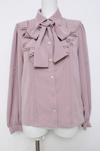 Ank Rouge / フレアーラッフルリボンタイブラウス M ピンク Y-26-03-20-063-CA-BL-SZ-ZY