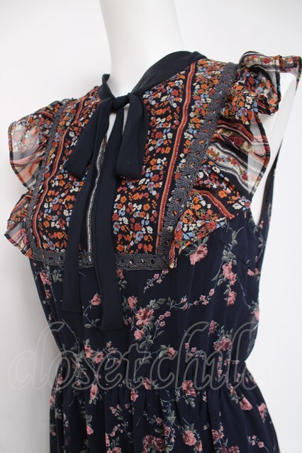 axes femme / パッチワーク花柄ロングワンピース M 紺 Y-26-03-20-073-AX-OP-SZ-ZY