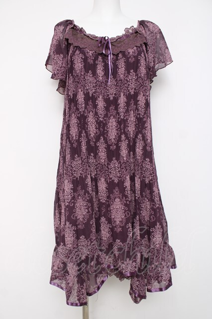 axes femme / アラベスク柄プリーツシフォンワンピース M 紫 Y-26-03-20-075-AX-OP-SZ-ZY