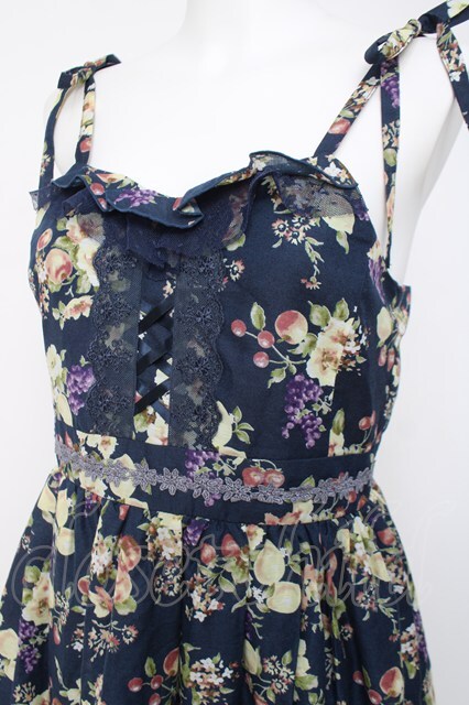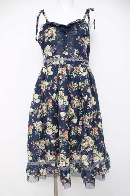 axes femme / フルーツ柄キャミワンピース M 紺 Y-26-03-20-086-AX-OP-SZ-ZY