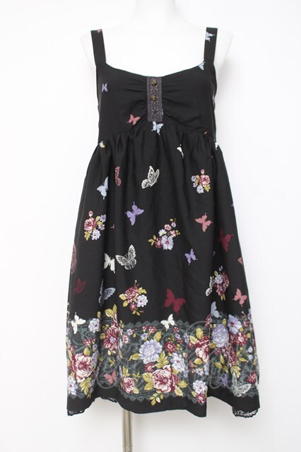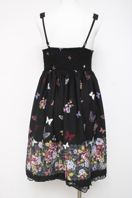axes femme / 蝶柄キャミワンピース M 黒 Y-26-03-20-090-AX-OP-SZ-ZY
