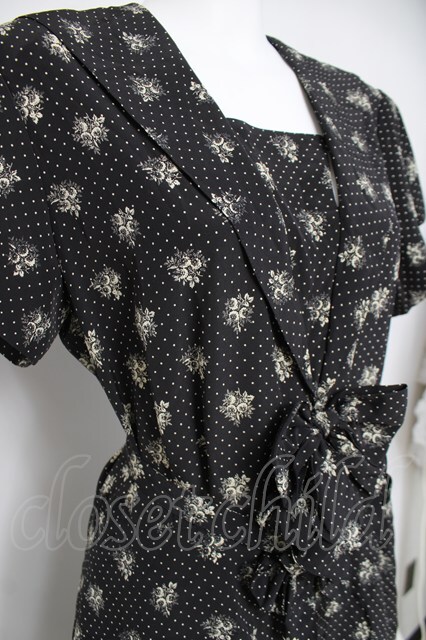 INGEBORG / ドット×ブーケ柄セーラーワンピース F 黒 Y-26-03-20-111-LO-OP-SZ-ZY
