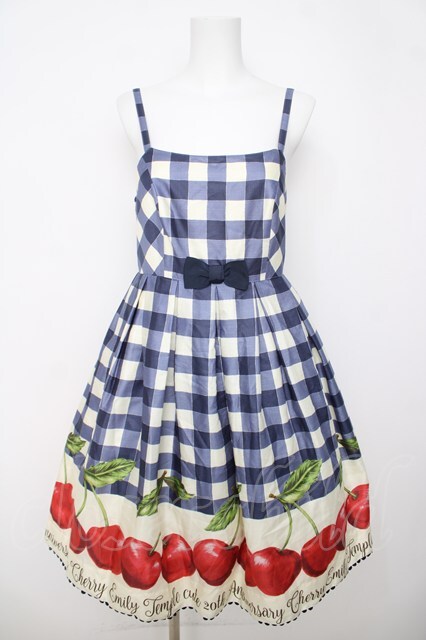 Emily Temple cute / アニバーサリーチェリーキャミワンピース 青 Y-26-03-20-154-ET-OP-SZ-ZY