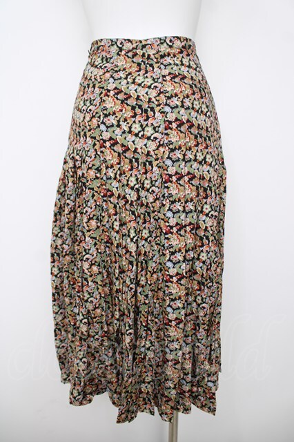 INGEBORG / 花総柄プリーツスカート 黒 Y-26-03-20-175-LO-SK-SZ-ZY