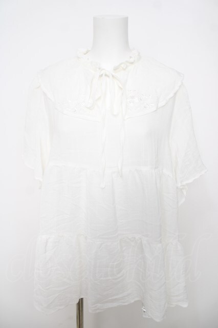 axes femme / 刺繍襟ティアードチュニック 白 Y-26-03-22-040-AX-BL-SZ-ZY