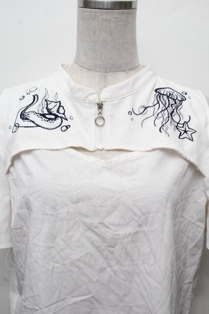 axes femme POETIQUE / ダークマリン肩開き刺繍ブラウス 白 S-26-03-19-003-AX-BL-AS-ZS