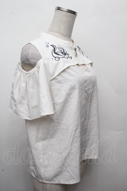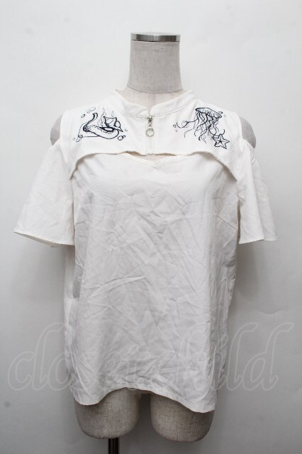axes femme POETIQUE / ダークマリン肩開き刺繍ブラウス 白 S-26-03-19-003-AX-BL-AS-ZS [2100020000039062-S-26-03-19-003-AX-BL-AS-ZS]