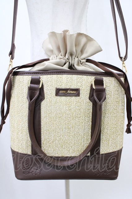 axes femme / 合皮×雑材バイカラーバッグ ブラウン H-26-03-22-1007-AX-BG-NS-ZH [2100030000090250-H-26-03-22-1007-AX-BG-NS-ZH]
