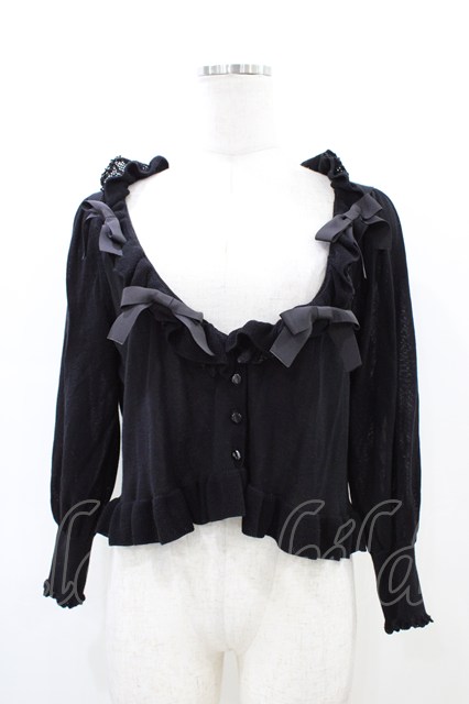 Maria pipi / リボンネックカーディガン Free ブラック H-26-03-22-1040-EL-TO-NS-ZH