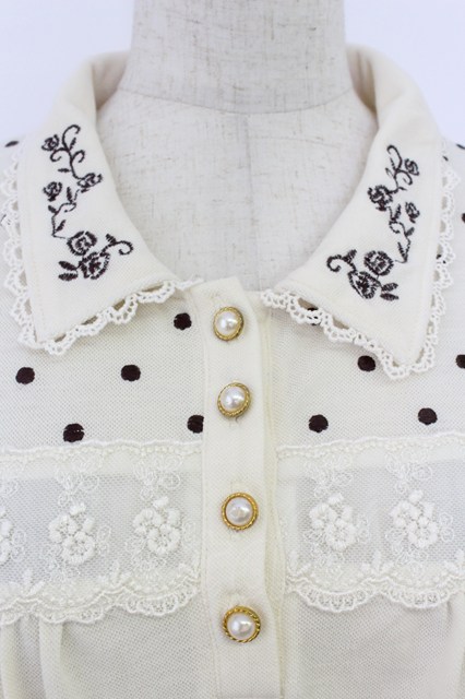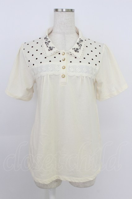 axes femme / 襟刺繍ポロシャツ M キナリ T-26-03-24-006-AX-TO-SA-ZT