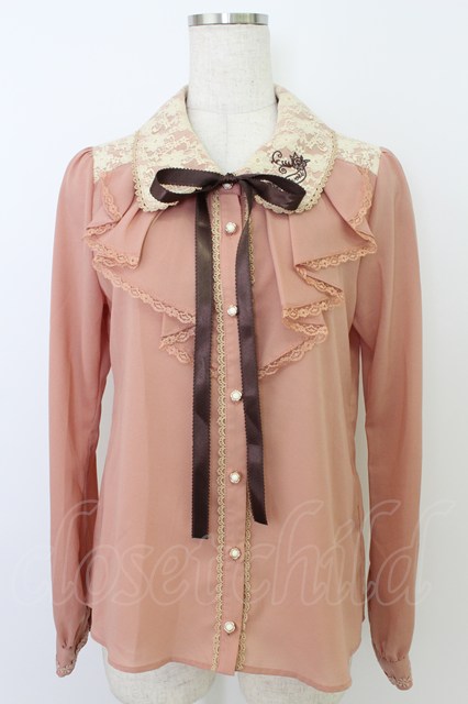 axes femme / レース襟刺繍ブラウス ピンク T-26-03-24-010-AX-BL-SA-ZT