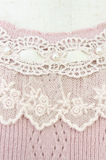 axes femme / クロス編みニットプルオーバー ピンク T-26-03-24-012-AX-TO-SA-ZT