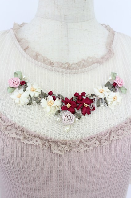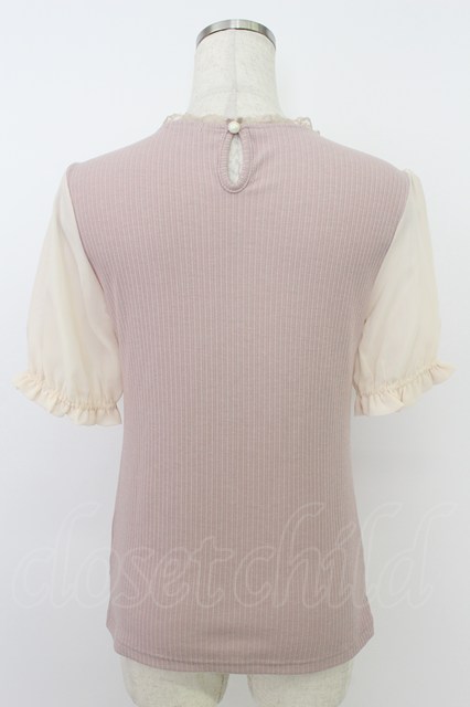 axes femme POETIQUE / ブーケリボン刺繍リブプルオーバー ピンク T-26-03-24-013-AX-TO-SA-ZT