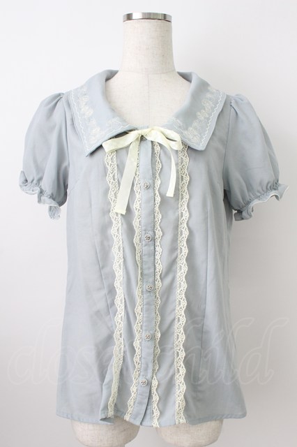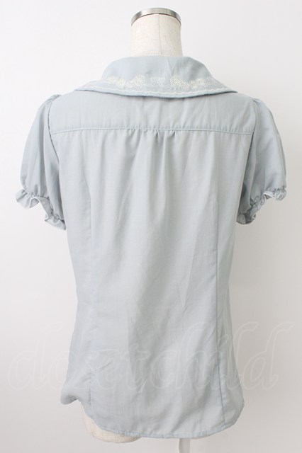axes femme POETIQUE / リボン刺繍襟半袖ブラウス サックス T-26-03-24-019-AX-BL-SA-ZT [2100060000043814-T-26-03-24-019-AX-BL-SA-ZT]