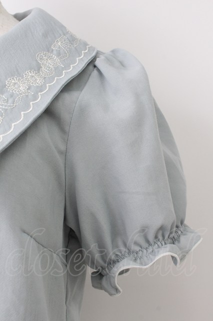 axes femme POETIQUE / リボン刺繍襟半袖ブラウス サックス T-26-03-24-019-AX-BL-SA-ZT