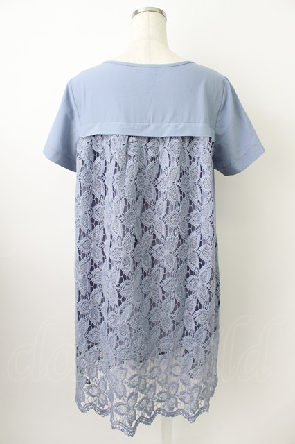 axes femme / 後ろレース切り替え半袖チュニック ブルー T-26-03-24-022-AX-TO-SA-ZT [2100060000043804-T-26-03-24-022-AX-TO-SA-ZT]