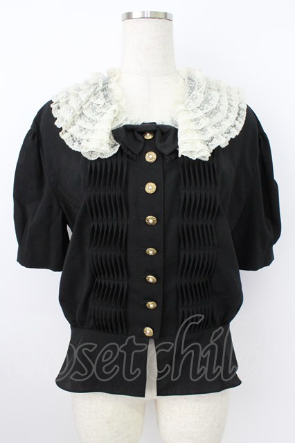 INGEBORG / レース襟&リボン半袖ブラウス&プリーツスカートセットアップ ブラック T-26-03-24-026-LO-BL-SA-ZT [2100060000046021-T-26-03-24-026-LO-BL-SA-ZT]