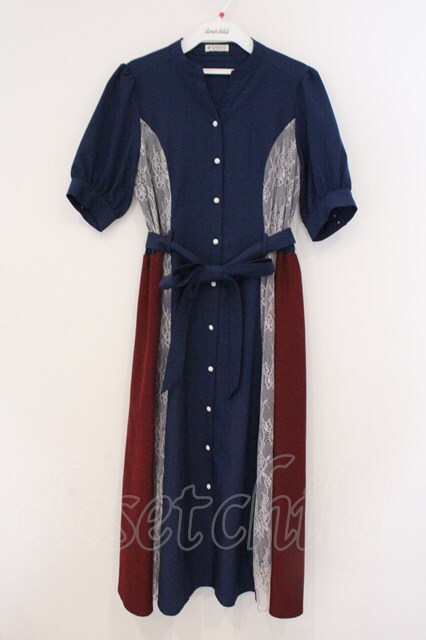 axes femme / レース切替配色シャツワンピ M ブルー×アカ O-26-03-21-065-AX-OP-IG-OS [2100080000077461-O-26-03-21-065-AX-OP-IG-OS]