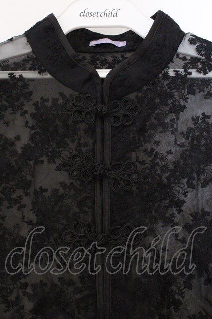 axes femme kawaii / シースルーチャイナブラウス M クロ O-26-03-21-067-AX-BL-IG-OS