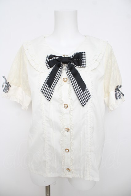 LIZ LISA / ギンガムリボンブラウス 0 白/黒 Y-26-03-24-041-LO-BL-SZ-ZY [2100070000065920-Y-26-03-24-041-LO-BL-SZ-ZY]
