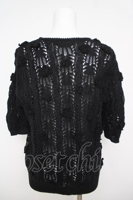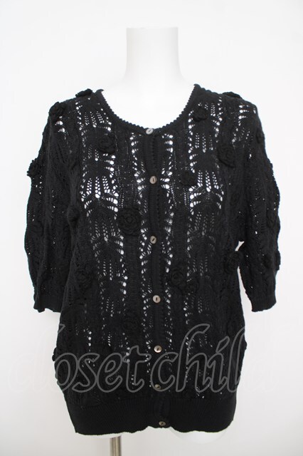INGEBORG / カメリアモチーフ半袖ニットカーディガン 黒 Y-26-03-24-055-LO-TO-SZ-ZY [2100070000058877-Y-26-03-24-055-LO-TO-SZ-ZY]