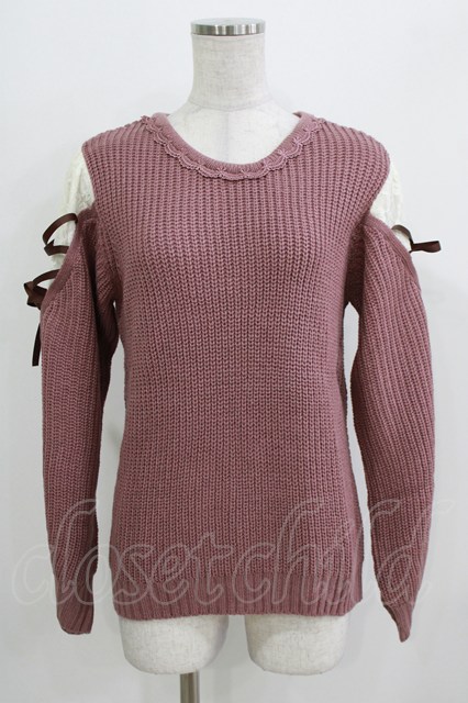 axes femme / 袖レースアップデザインニット M ピンク H-26-03-23-036-AX-TO-NS-ZH [2100030000089742-H-26-03-23-036-AX-TO-NS-ZH]