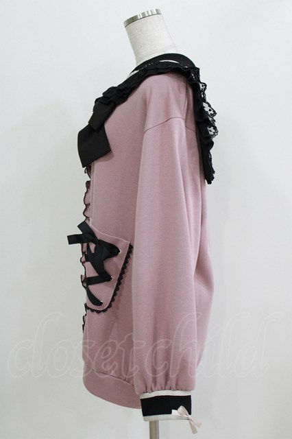 DearMyLove / ハートレースリボンセーラー裏毛チュニックブルゾン M~L ピンク/ブラック H-26-03-23-019-EL-TO-NS-ZH