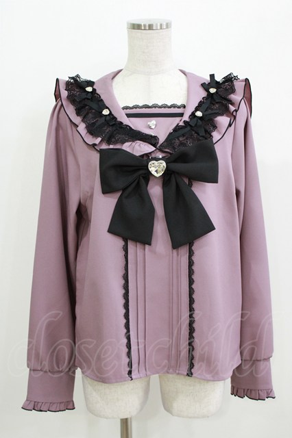 DearMyLove / ハートリボンたっぷりフリルセーラーブラウス L パープル/ブラック H-26-03-23-027-EL-BL-NS-ZH