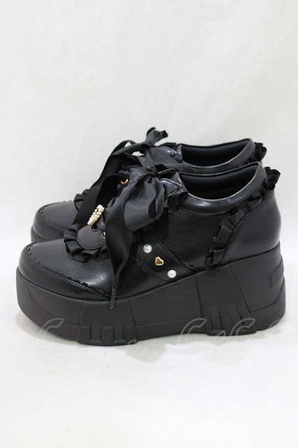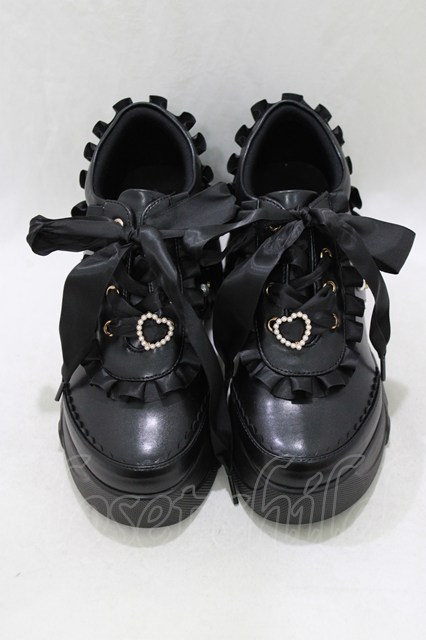 Amavel / 厚底フリルスニーカー L/24cm~24.5cm ブラック H-26-03-23-074-CA-SH-NS-ZH [2100030000089773-H-26-03-23-074-CA-SH-NS-ZH]
