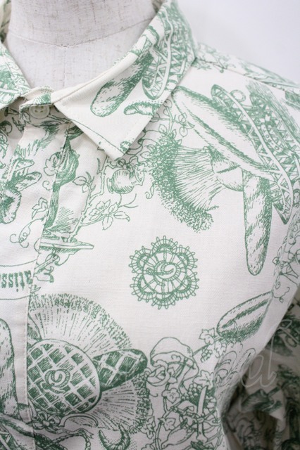 Q-pot. / パティスリー Q-pot.ドレスシャツ ユニセックス アイボリーxグリーン I-26-03-23-004-QP-BL-SA-ZI [2100060000052854-I-26-03-23-004-QP-BL-SA-ZI]