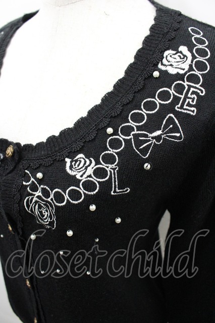 axes femme / 刺繍カーディガン 黒X白 I-26-03-23-011-AX-TO-SA-ZI