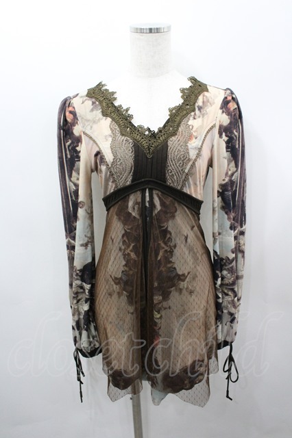 OZZ ANGELO / 絵画総柄チュール重ねカットソー ブラウン I-26-03-23-026-OO-TO-SA-ZI [2100060000043508-I-26-03-23-026-OO-TO-SA-ZI]