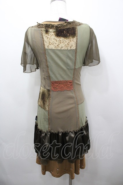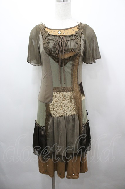 OZZ ANGELO / チュール袖重ねワンピース カーキxブラウン I-26-03-23-060-OO-OP-SA-ZI [2100060000043509-I-26-03-23-060-OO-OP-SA-ZI]