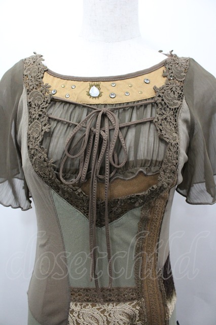 OZZ ANGELO / チュール袖重ねワンピース カーキxブラウン I-26-03-23-060-OO-OP-SA-ZI