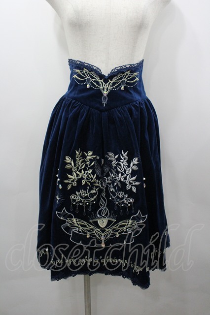 ichigomikou / フロント刺繍ハイウエストスカート 紺x白xゴールド I-26-03-23-068-LO-SK-SA-ZI [2100060000052924-I-26-03-23-068-LO-SK-SA-ZI]