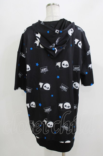 NieR Clothing / 総柄ZIP半袖パーカー F 黒 H-26-03-24-060-PU-TO-KB-ZH