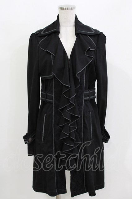 OZZ ANGELO / レース切替フラッフィーロングジャケット ブラック H-26-03-24-041-OO-JA-KB-ZH [2100030000090100-H-26-03-24-041-OO-JA-KB-ZH]