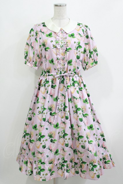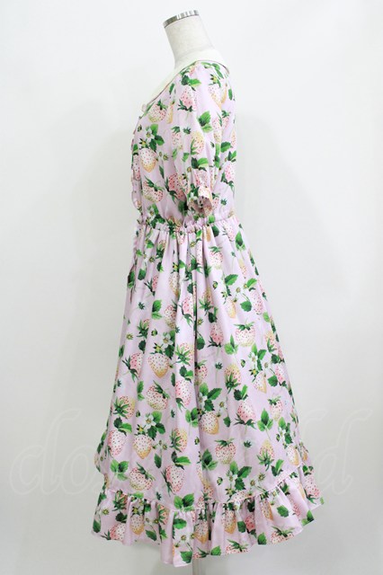 Perla nell' ostrica / いちごプリントキャンディボタンワンピース ピンク H-26-03-24-015-EL-OP-KB-ZH