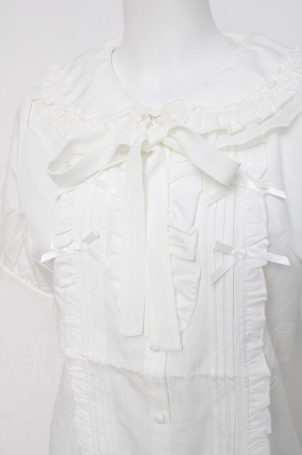 axes femme POETIQUE / リボンフリル半袖ブラウス M 白 Y-26-03-26-049-AX-BL-SZ-ZY [2100070000066223-Y-26-03-26-049-AX-BL-SZ-ZY]