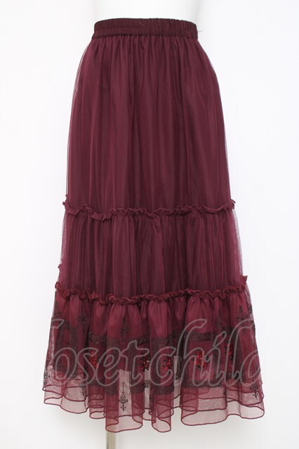 axes femme / 額縁刺繍チュールスカート F ワイン Y-26-03-26-085-AX-SK-SZ-ZY