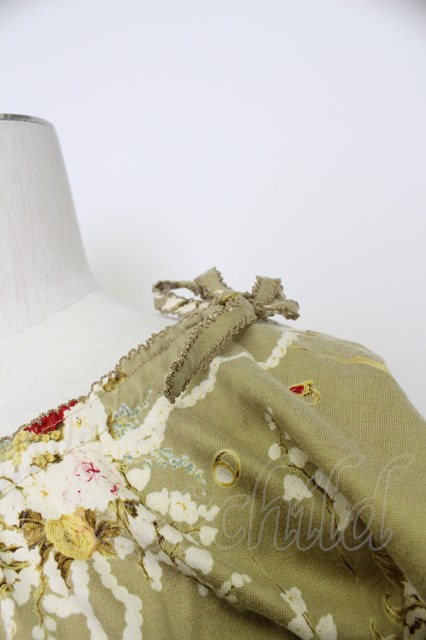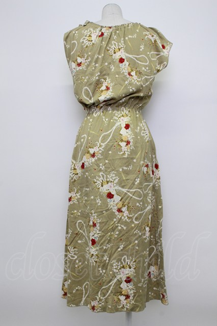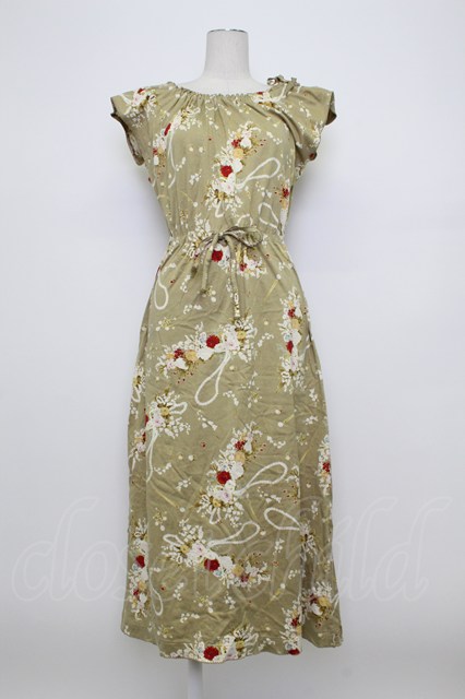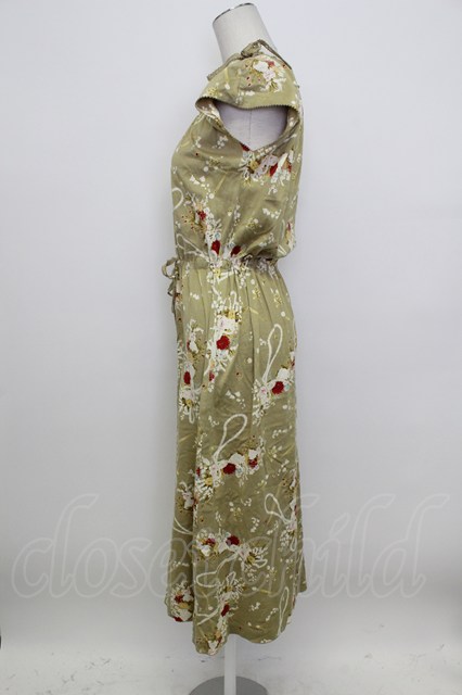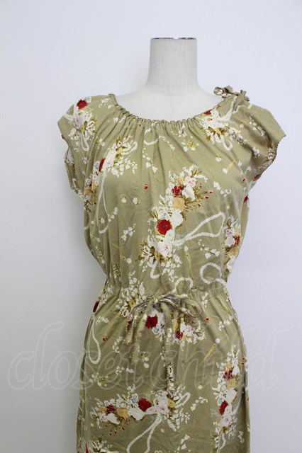 KANEKO ISAO / アクセサリー&フラワーpt襟元シャーリングワンピース オリーブ T-26-03-23-015-EL-OP-SA-ZT [2100060000047544-T-26-03-23-015-EL-OP-SA-ZT]