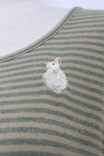 PINK HOUSE / うさぎ刺繍ボーダーノースリーブワンピース ベージュ×グリーン T-26-03-23-016-LO-OP-SA-ZT [2100060000047542-T-26-03-23-016-LO-OP-SA-ZT]