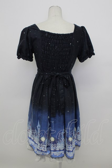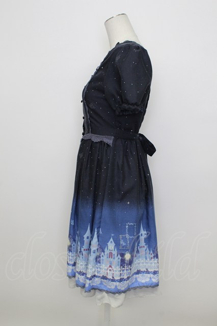 axes femme / グラデーションお城柄ワンピース ネイビー T-26-03-23-018-AX-OP-SA-ZT