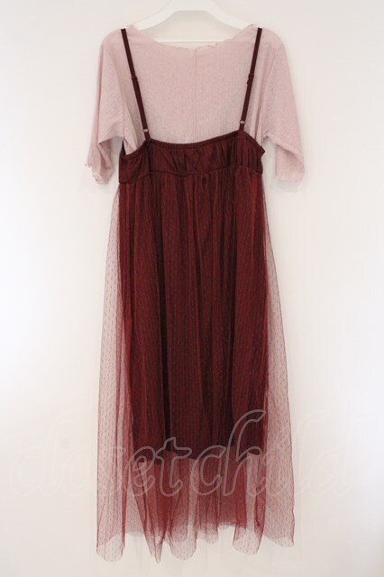 axes femme POETIQUE / インナー付ドットチュールワンピース ワイン×ピンク O-26-03-23-042-AX-OP-IG-OS