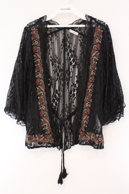 axes femme / フラワー刺繍レースカーデ/ミュルーズ染織美術館コラボ クロ O-26-03-23-040-AX-TO-IG-OS