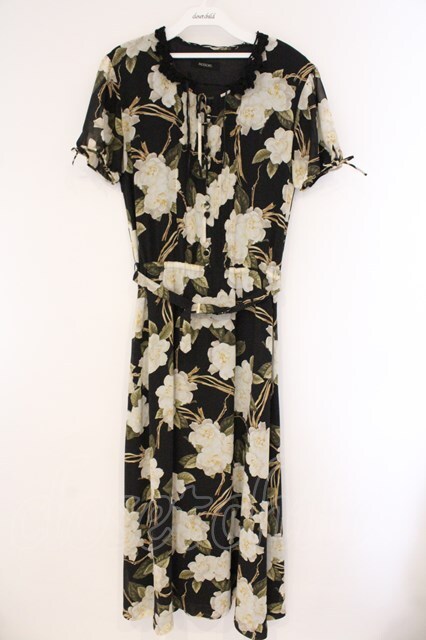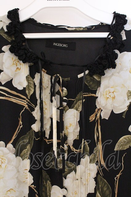 INGEBORG / カメリア総柄シフォン半袖ワンピース クロ O-26-03-23-046-LO-OP-OW-OS
