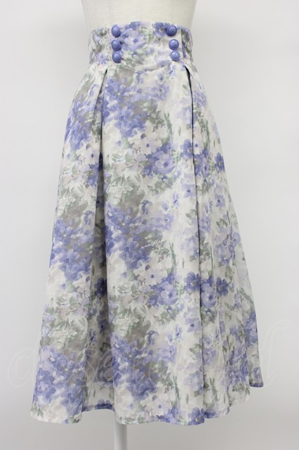an another angelus / ダブル釦水彩フラワー柄タックスカート light blue T-26-03-30-005-CA-SK-SA-ZT [2100060000046721-T-26-03-30-005-CA-SK-SA-ZT]