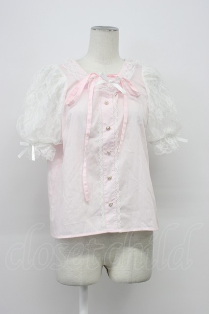 Lovely Tency / 眞白ありすコラボ/TTハンソデチョーカーBL M ピンクX白 T-26-03-30-013-GO-BL-SA-ZT