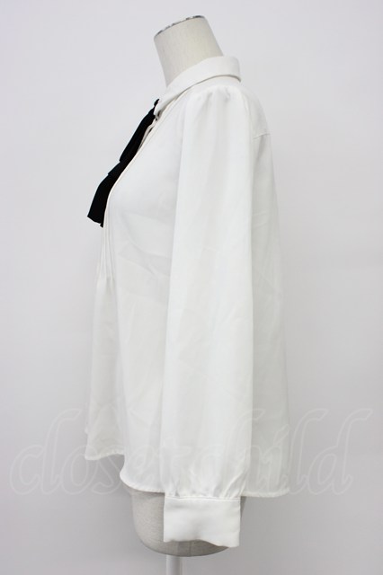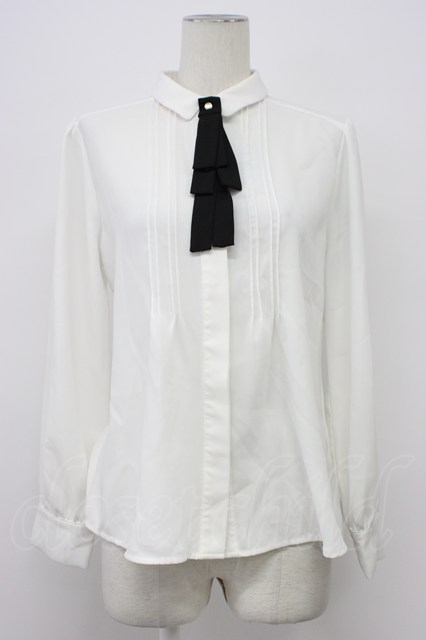 an another angelus / 多重リボンタイ付きピンタックブラウス 白X黒 T-26-03-30-017-CA-BL-SA-ZT [2100060000046719-T-26-03-30-017-CA-BL-SA-ZT]